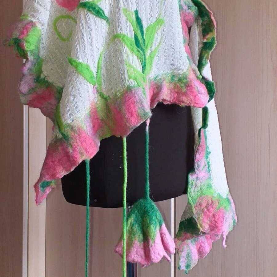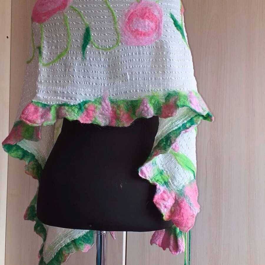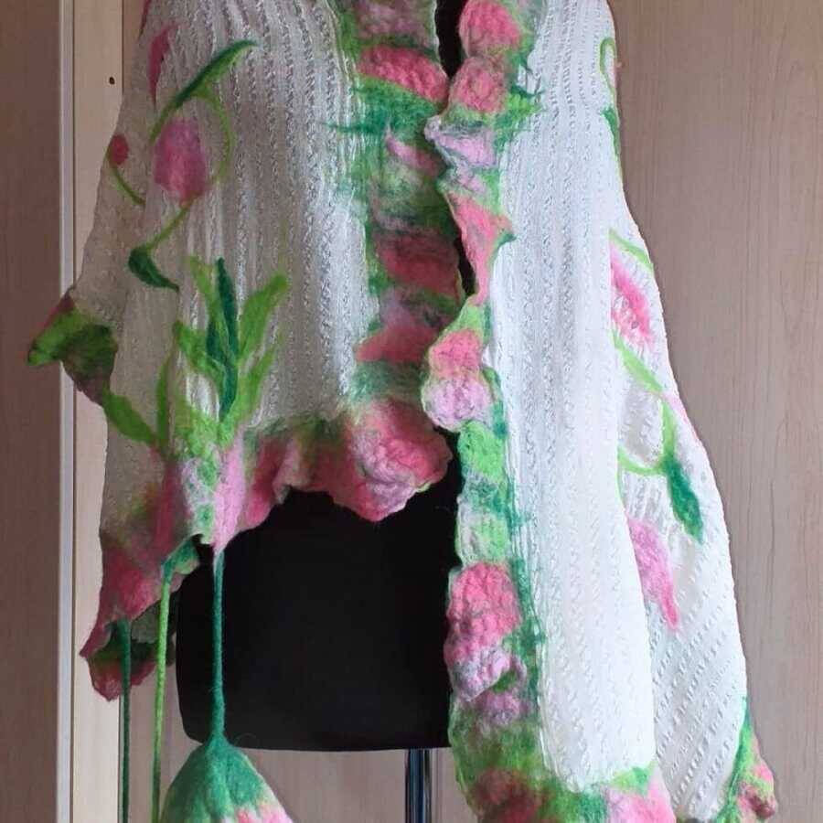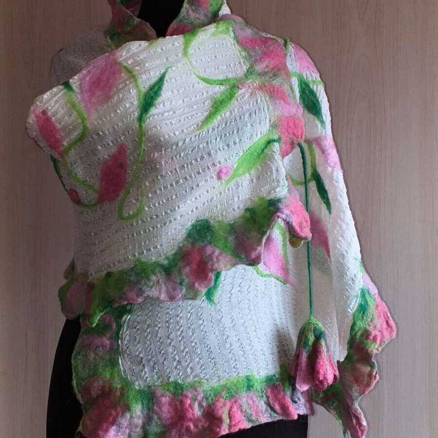 Her bir detayıyla özenle tasarlanmış olan Açelya Şalı, doğanın renk paletinden ilham alınarak hazırlanmıştır. İpek, pamuk ve filoş iplerin uyumuyla oluşan dokusu, şalın yumuşak ve hafif hissini sağlarken, ıslak keçe kaynaştırma tekniği ise şala benzersiz bir dokunuş kazandırır.