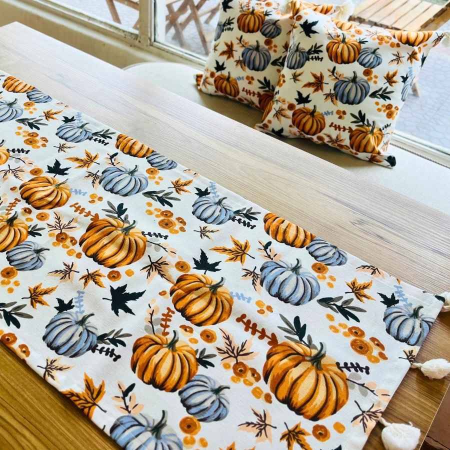 dekoratif runner, kırlent kılıfı setimiz balkon, bahçe, mutfak mobilyalarınıza şıklık katacak, renkleri ve desenleri sofralarınıza sonbahar, kış esintisini yansıtacak güzelliktedir