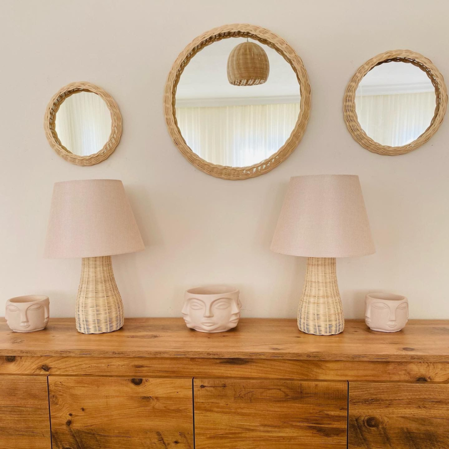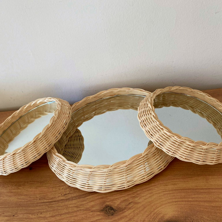 Bambu aynaların, ayna bölümlerinin etrafı doğal rattan çubukları (bambu) ile örülmüştür. Aynaların arka asma bölümleri örgüsüzdür.