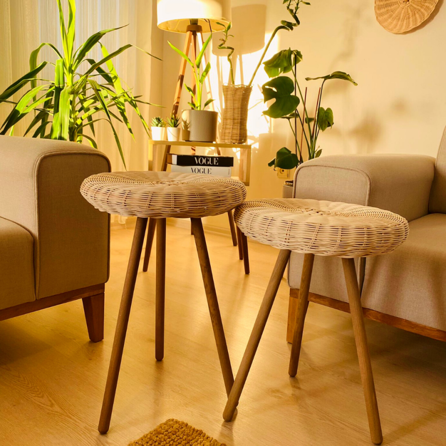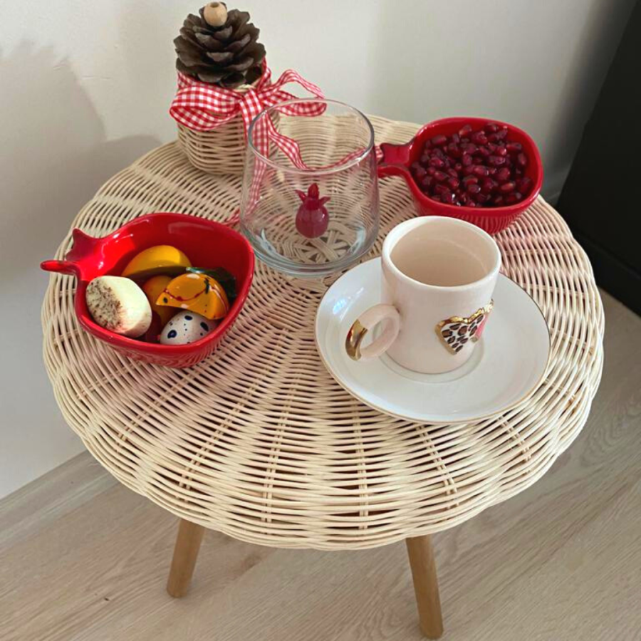 Bambu örgülü sehpalar evinize sade bir şıklık katar. Sehpaları tekli ya da ikili şekilde kullanabilirsiniz. Sehpanın üst kısmı %100 doğal rattan çubukları ile örülmüştür. Tamamen el emeğidir.