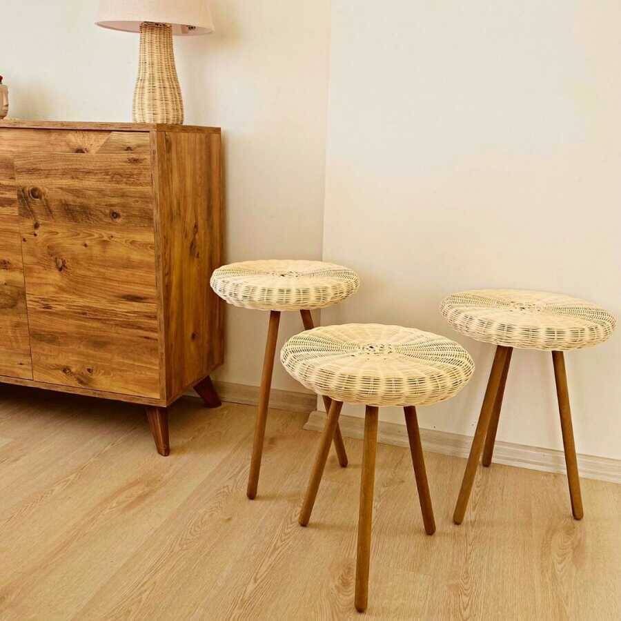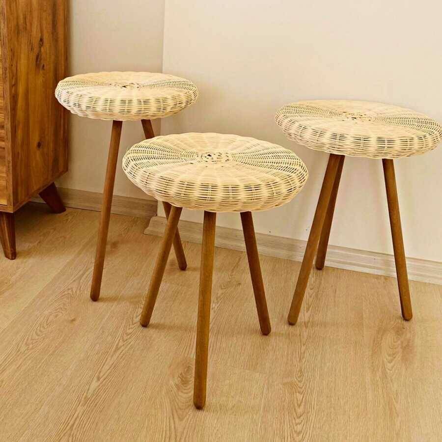 Bambu örgülü üçlü sehpaların evine sade bir şıklık katacağını düşünüyorum. Dilersen sehpaları tekli ya da ikili şekilde kullanabilirsin.