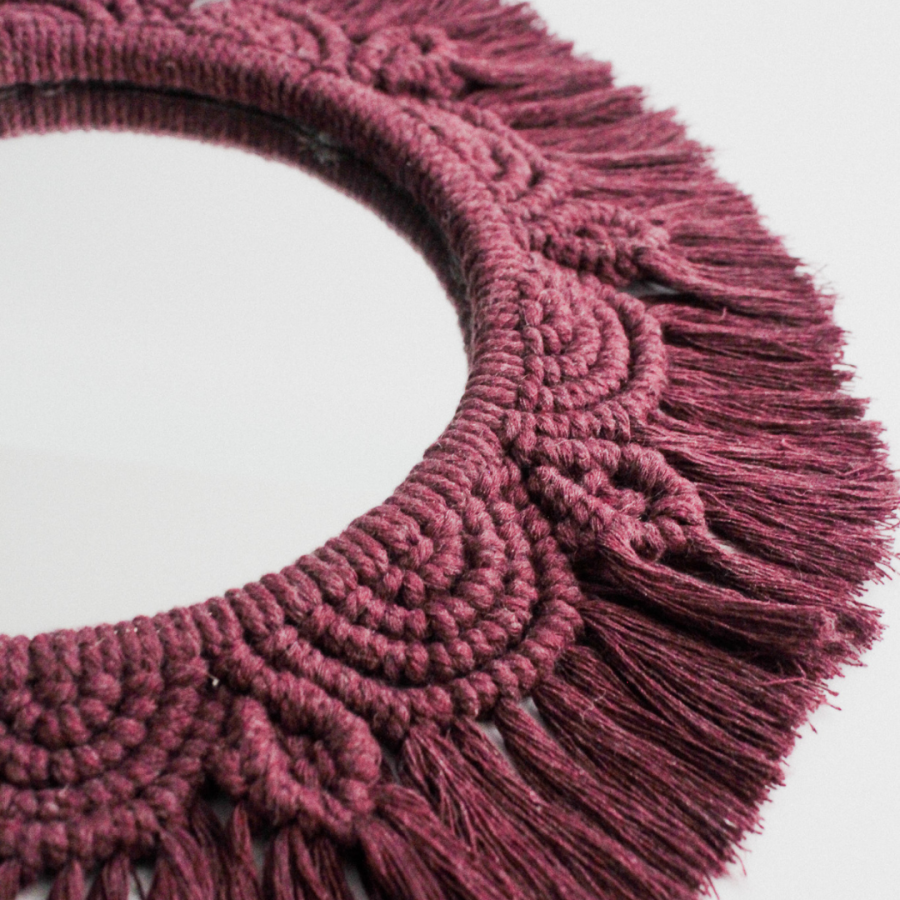 Bohem Tarzı Mor Makrome Duvar Aynası – El Yapımı 37x37 cm