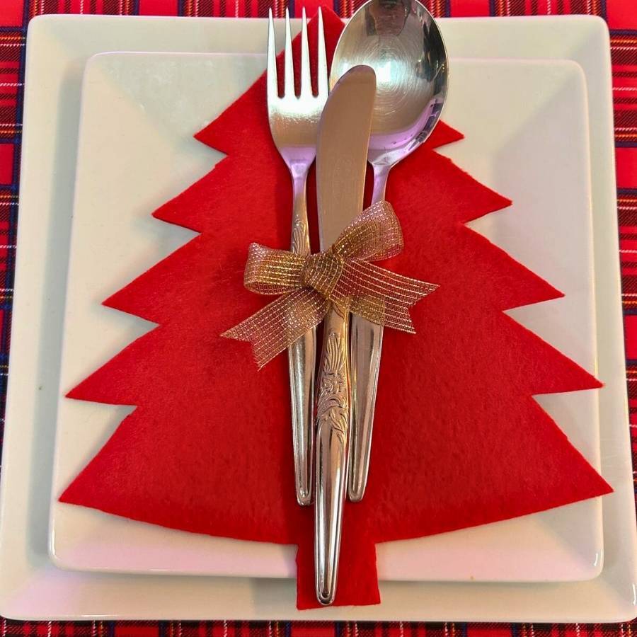 Keçe kaşık, çatal ve bıçaklık, yılbaşı sofralarında daha şık ve farklı sunumlar yapmak isteyenler için güzel bir seçenektir