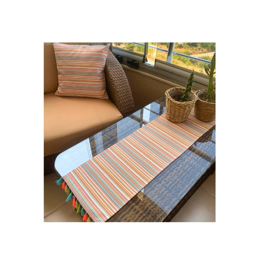 RENKLİ PÜSKÜL DETAYLI KIRLENT KILIFI VE RUNNER SET %100 DUCK KETEN KUMAŞTAN ÖZENLE HAZIRLANIR, MUTFAK, BALKON, BAHÇENİZDE YEMEK VE ÇAY SAATLERİNİZE EŞLİK EDECEK GÜZELLİKTE.