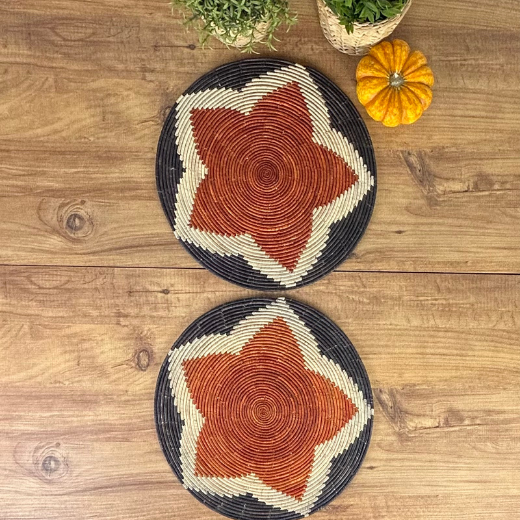 El Yapımı Desenli 2’li Hasır Supla Seti 30cm Çap – Amerikan Servis, Dayanıklı Örgü, Modern Rustik Masa Dekoru