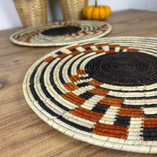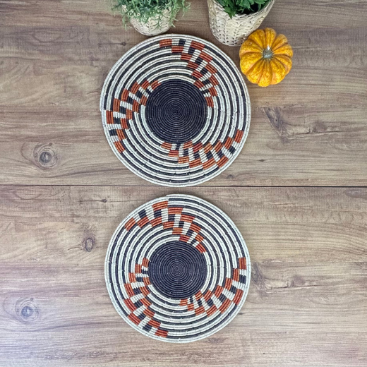 El Yapımı Desenli 2’li Hasır Supla Seti 30cm Çap – Amerikan Servis, Dayanıklı Örgü, Modern Rustik Masa Dekoru