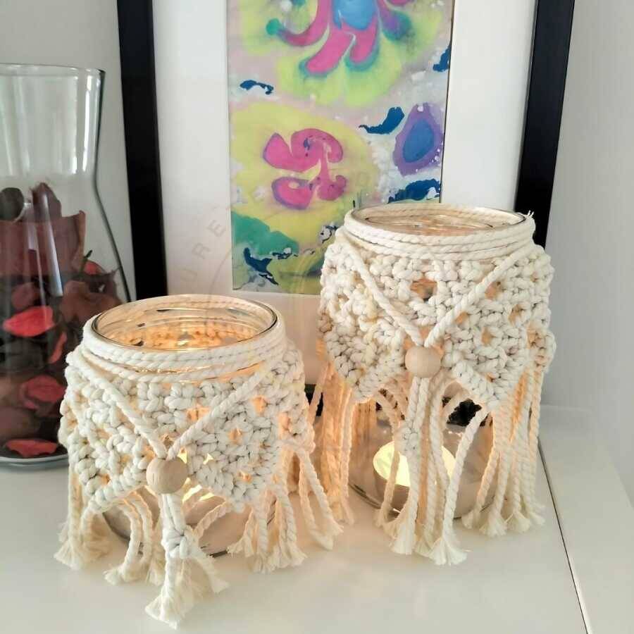 El Yapımı Makrome Cam Mumluk İkili Set | Doğal Bohem Dekor