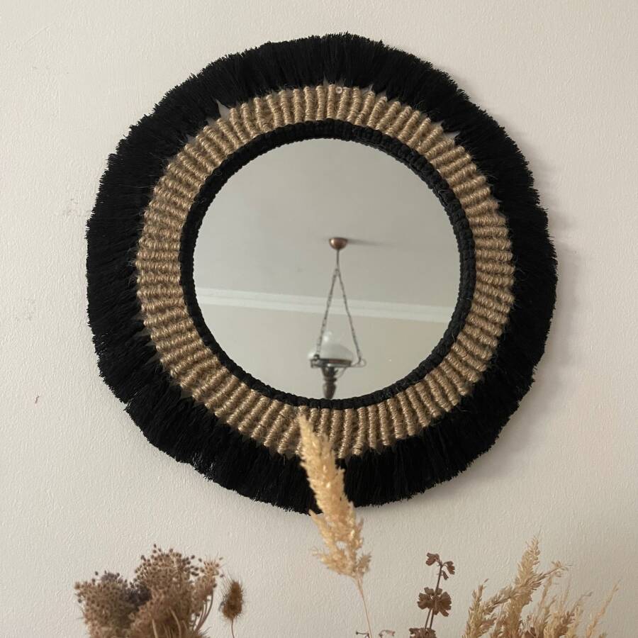 El Yapımı Makrome & Jüt Duvar Aynası