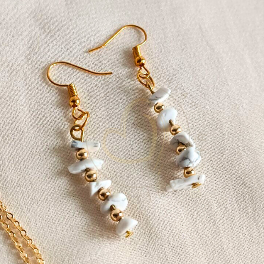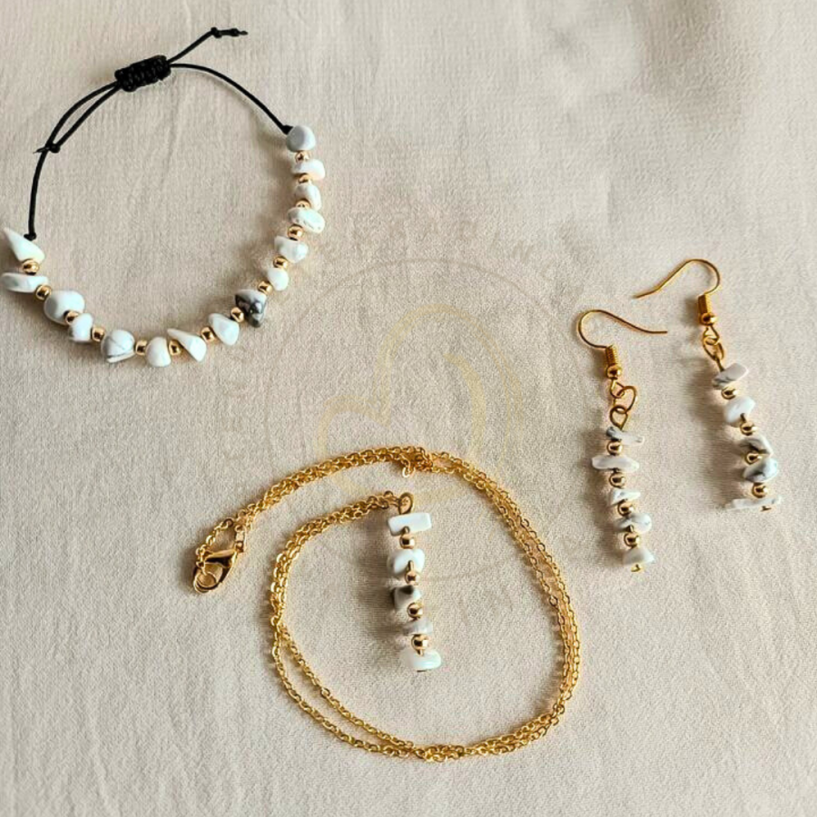 Havlit taşı, kişiye sabır, sakinlik, huzur vermeye; öfke ve kırgınları gidermeye yardımcı bir taştır.Bu takı setiyle birlikte, doğanın enerjisini yanınızda hissedeceksin.Havlit taşının olumlu titreşimleri, sana pozitiflik ve denge getirecek, her gününü daha anlamlı kılacak. Bu takı seti, sadece bir aksesuar değil, aynı zamanda ruhuna dokunan bir deneyimdir.