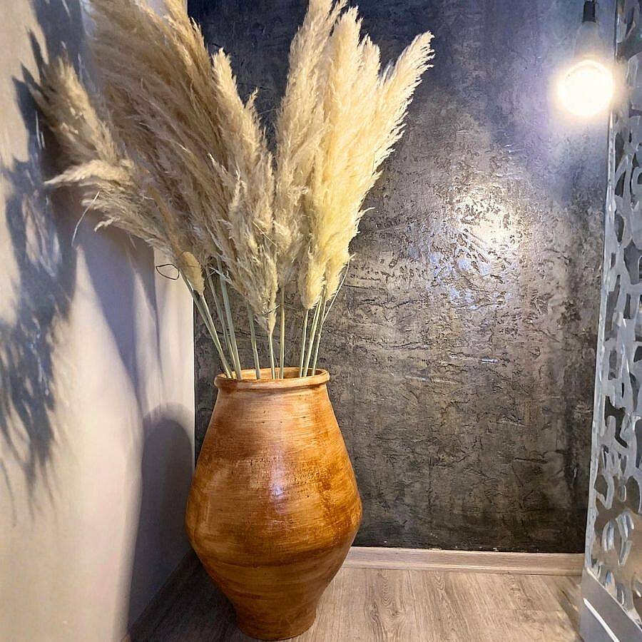 Büyük boy yapısı ile özellikle salon, giriş alanı ve geniş mekanlarda dikkat çekici bir dekoratif tamamlayıcı olarak kullanılabilir. Pampas otu ile kombinlendiğinde bohem ve rustik bir görünüm sunarak ortama doğal bir şıklık katar.