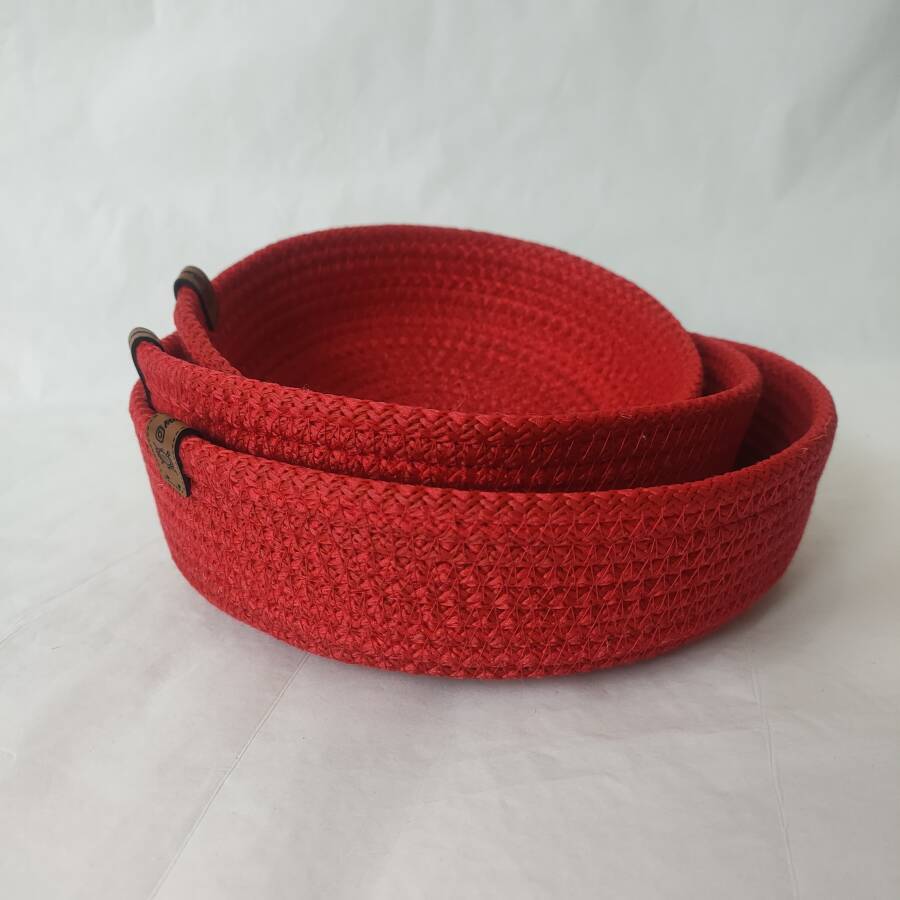 Kırmızı Polyester İp İle Makinada Dikilen Çok Amaçlı Organizer Sepet Takımı, pratik ve şık tasarımı ile ev düzeninizi sağlamak için ideal bir set.