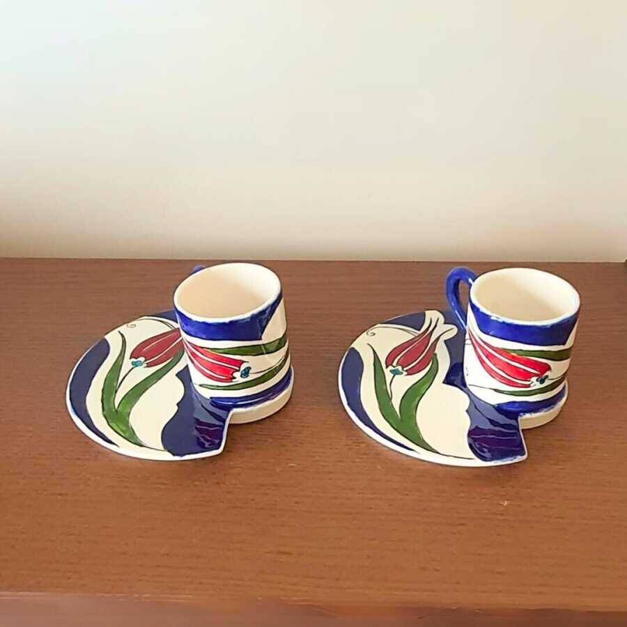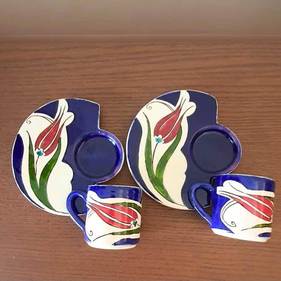 - 2 adet kahve tepsisi, 2 adet kahve fincanı