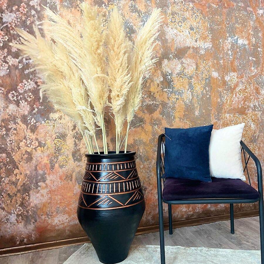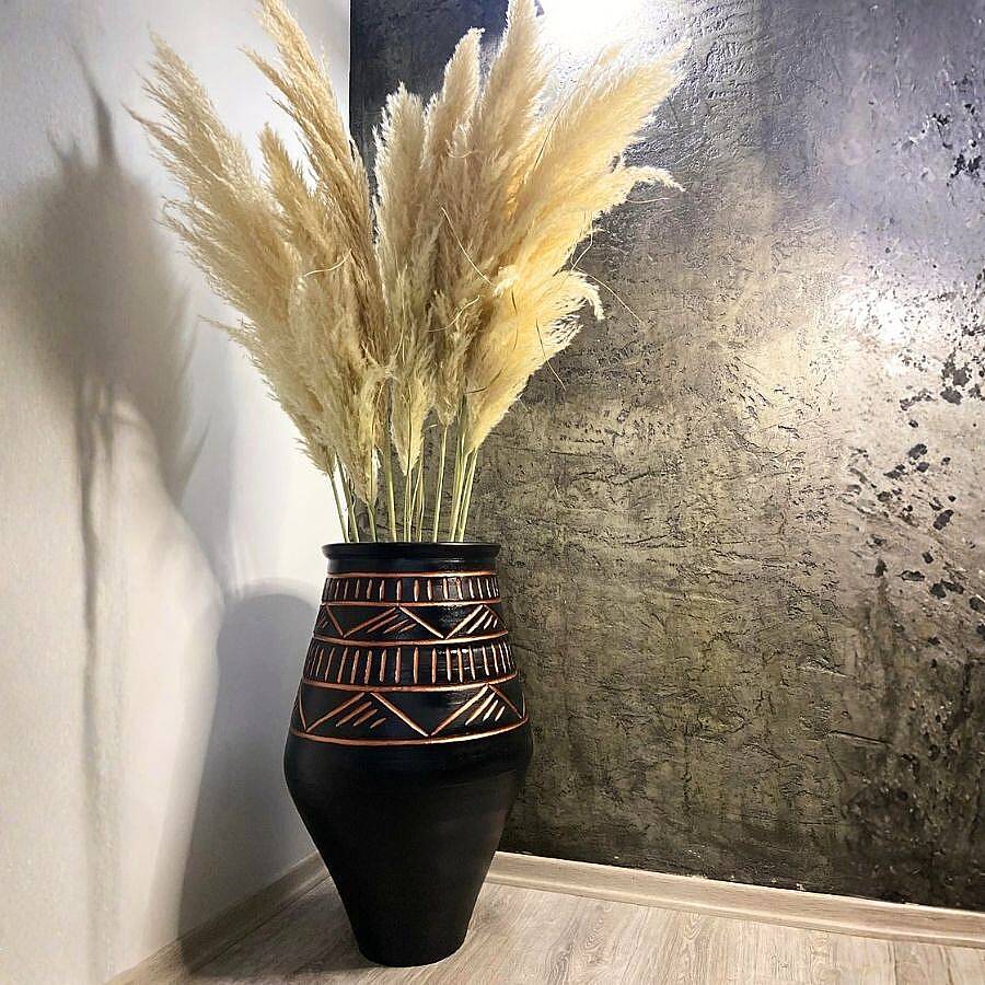 Bu dekoratif toprak küp; büyük boy vazo arayanlar, bohem dekor sevenler ve salon dekoru için şık bir pampas vazosu arayanlar için ideal bir seçimdir. El yapımı vazo olması sayesinde rustik dekor ve modern ev dekorasyonu ile uyum sağlar. Lüks dekoratif obje arayanlar için estetik ve dikkat çekici bir parçadır.