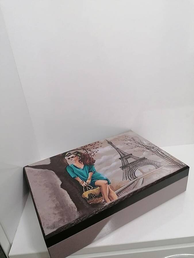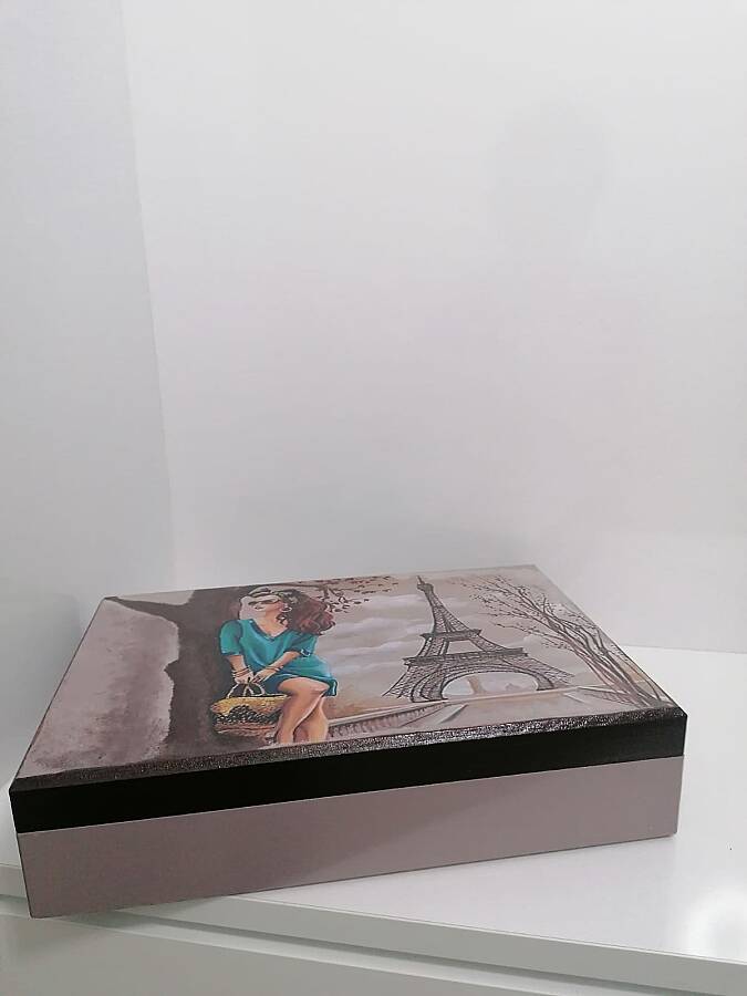 Ahşap malzemeden üretilmiş bu şık kutu hem estetik hem de fonksiyonel açıdan çok kullanışlıdır.Ev dekorasyonu için ideal bir çözümdür.Evde küçük eşyalarınızı düzenlemek için,takı,mücevher veya değerli eşyalarınızı özenle saklayabileceğiniz zarif kutudur.Kişiye özeldir.Aynı kutuyu bir başkasında göremezsiniz.