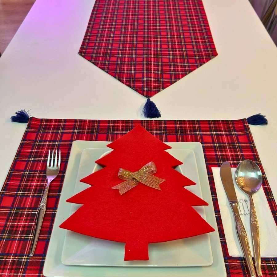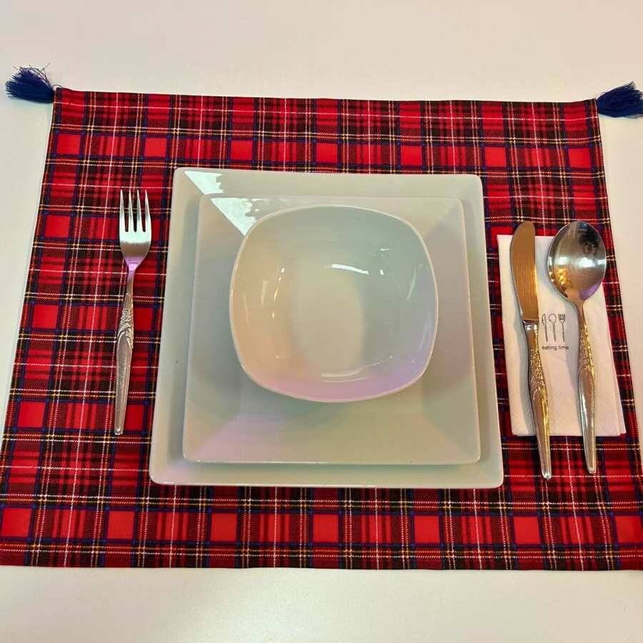 Kırmızı-Laci Ekose Duck Keten Runner, Amerikan servis Seti