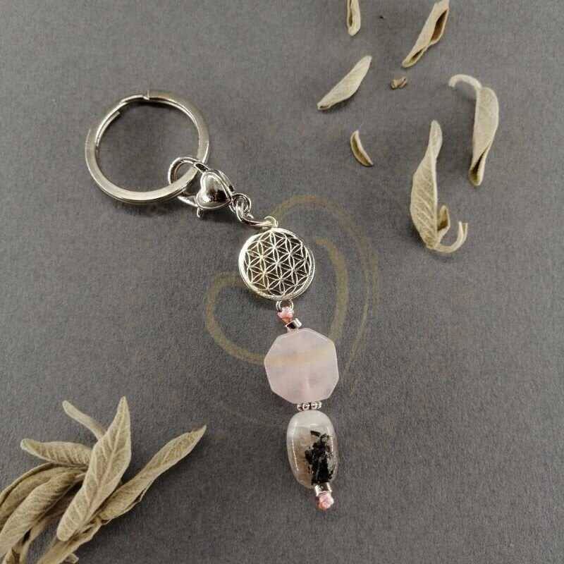 Sevgi ve Şifa Pembe Kuvars-Aytaşı Anahtarlık
