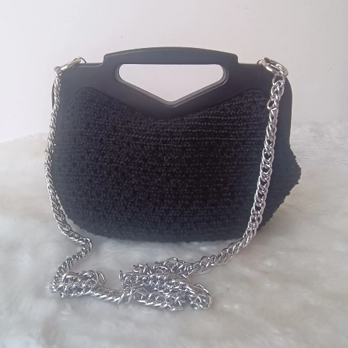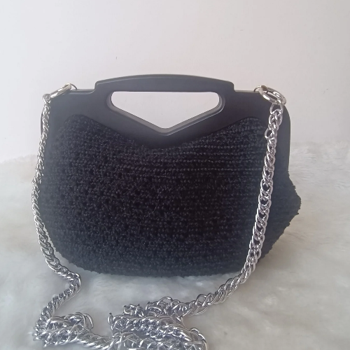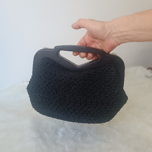 Zarafeti ve hafifliği bir arada sunan, el emeği ile makinede dikilmiş özel tasarım çanta. Şönil ipin kendine has yumuşak dokusu ve modern geometrik sap tasarımıyla stilinize fark katın.