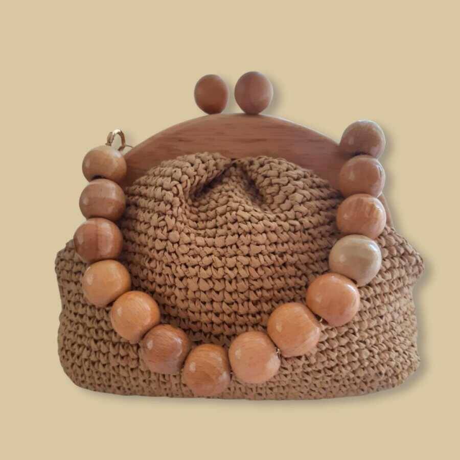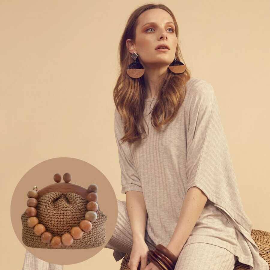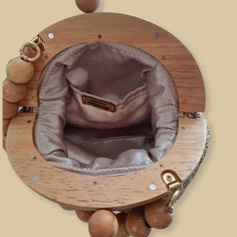 Ahşap saplı el çantası, doğal ve çevre dostu malzemelerden üretilmiştir. Yüksek kaliteli örgüsü, çantanın dayanıklılığını ve uzun ömürlü kullanımını garanti eder. Bu şık çanta, stiline zarif bir dokunuş katarak seni her ortamda öne çıkarır.