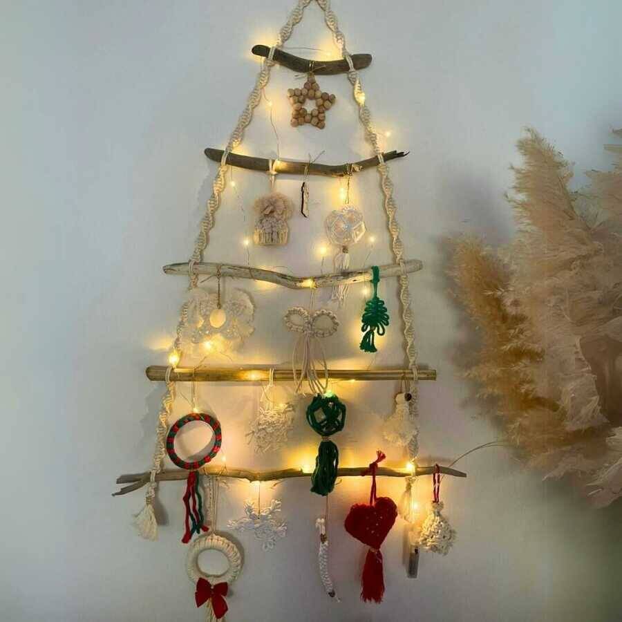 Yılbaşı Ağacı doğal lodos dallarının üzerine ilişen aksesuarlar doğal makrome iplerinden tamamen el yapımı olarak üretildi.ğacın üzerinde toplam 16 adet aksesuar bulunmaktadır.Işıkları ile birlikte kargolanacaktır.